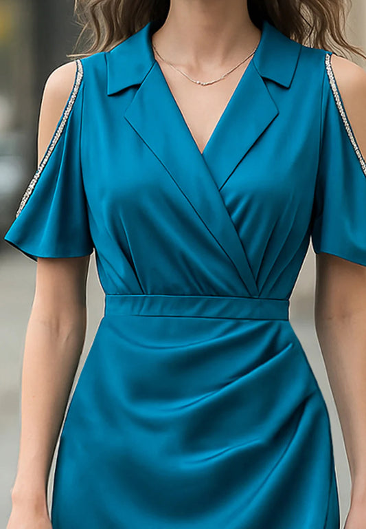 Blazer V-Neck Short Sleeves Button Sheath Work Dress