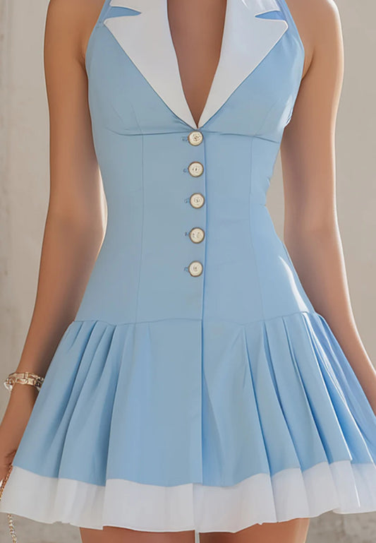 Blazer V-Neck Sleeveless Pleated A-Line Party Cocktail Dress