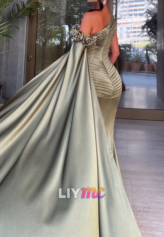One Shoulder Sleeveless Pleated Mermaid Formal Dress