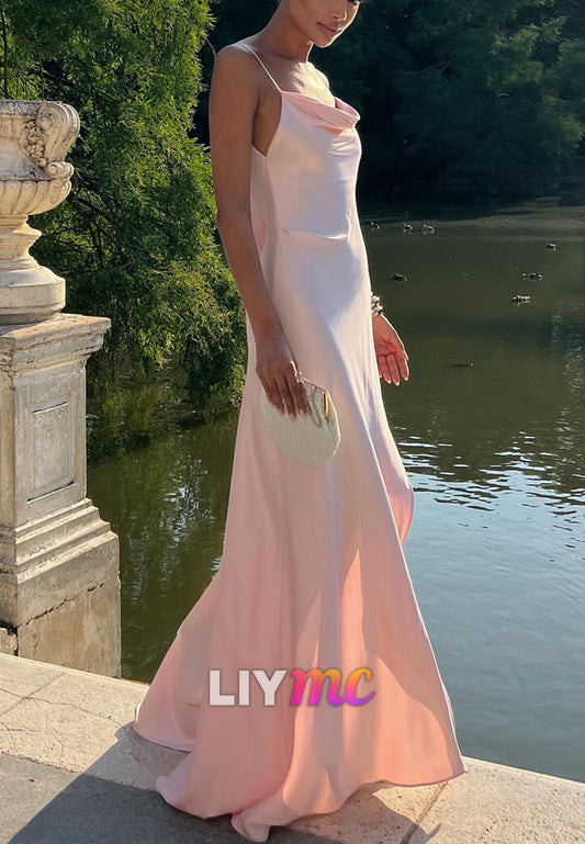 Scoop Spaghetti Straps Backless Sleek Sheath Formal Dress