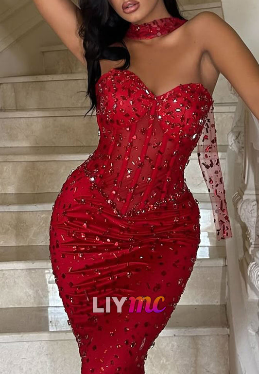 Sweetheart Sequins Sparkly Beaded Sheath Prom Dress