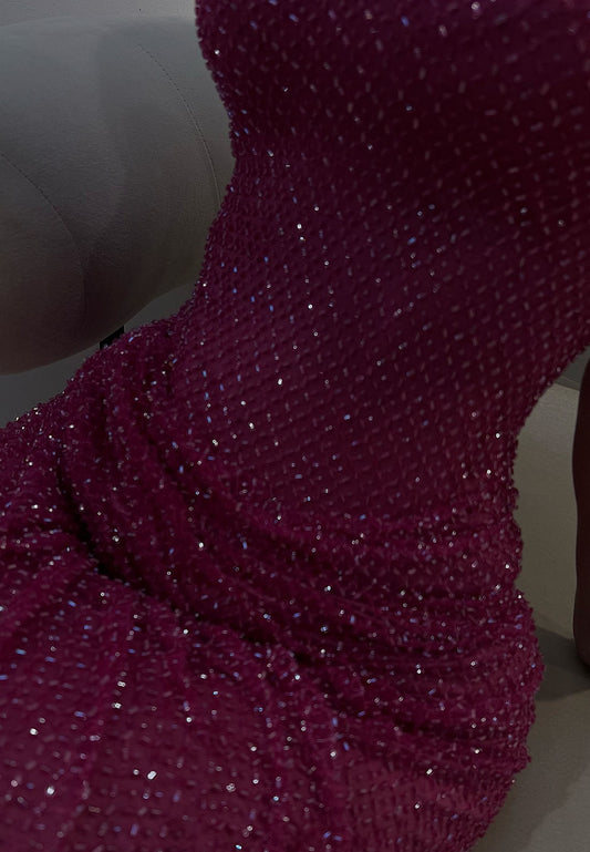 Off-Shoulder Beaded Sequins Sparkly Sheath Evening Dress