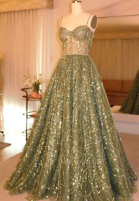 Sweetheart Straps Beaded Embroidery Sparkly Prom Dress
