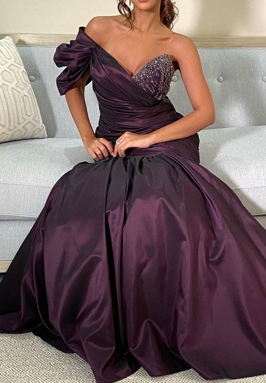 Sweetheart Strapless Pleated Beaded Mermaid Evening Dress