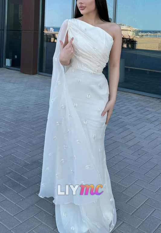 One Shoulder Sleeveless Pleated Sheath Formal Dress