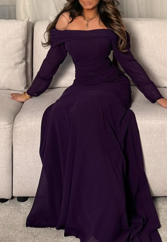 Pleated Off-Shoulder Evening Formal Maxi Dress