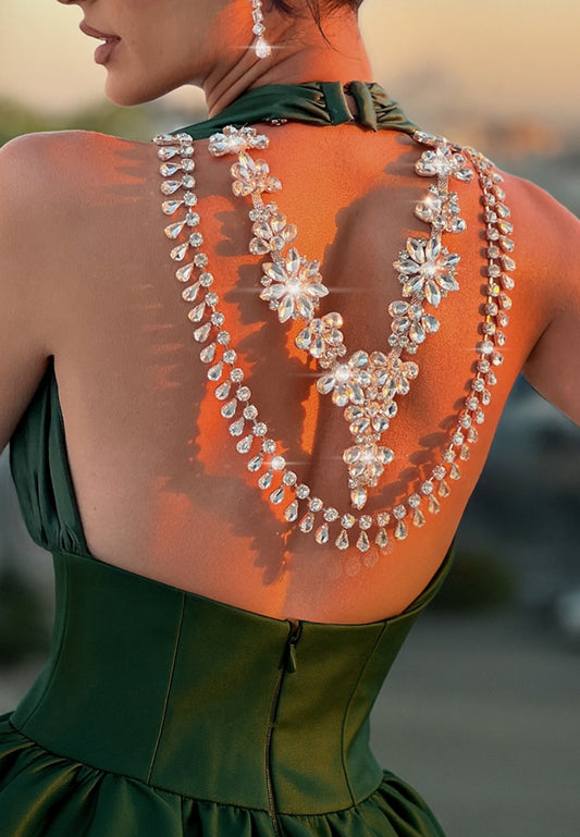 Halter Sleeveless Beaded Embroidery Sparkly Mermaid Evening Dress