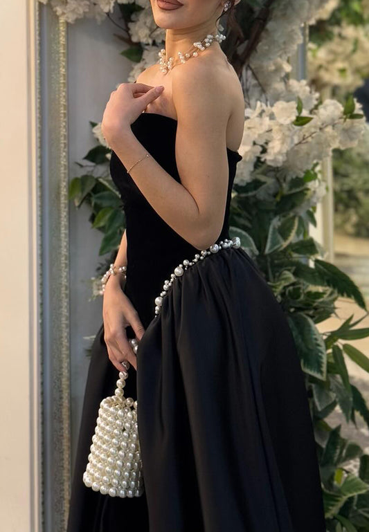Straight Across Pearl Pleated A-Line Evening Dress