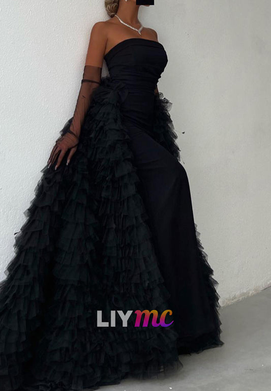 Off-Shoulder Sleeveless Prom Dress Tiered A-Line Evening Dress