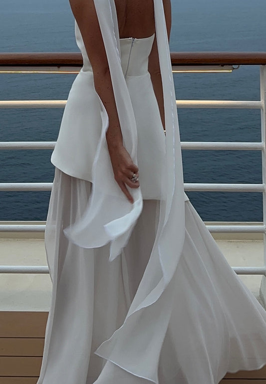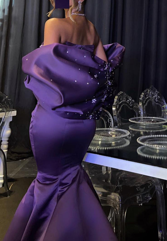 Off-Shoulder Strapless Pleatedd Evening Dress Mermaid Wedding Dress