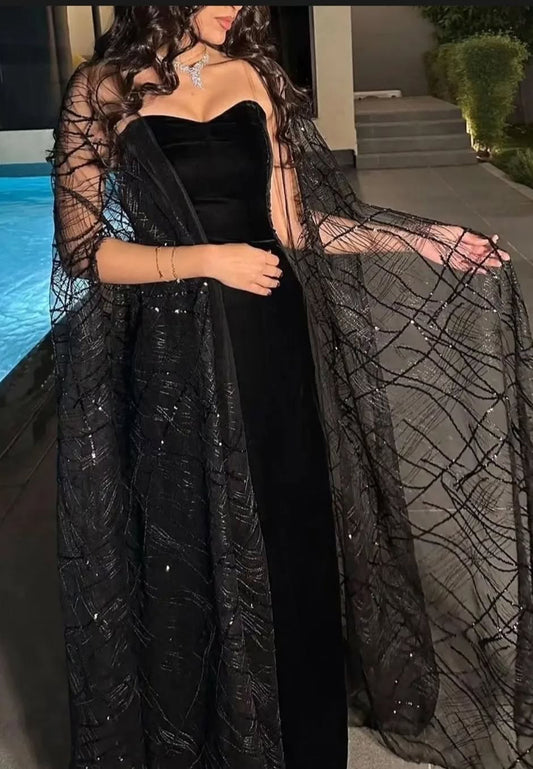 Off-Shoulder Long Sleeves Sheer Mermaid Evening Dress