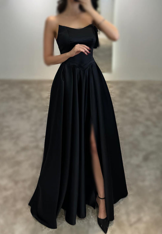 Off-Shoulder Sleeveless Bowknot Side Slit A-Line Evening Dress