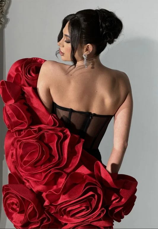 Off-Shoulder Strapless Mermaid 3D Floral Evening Dress