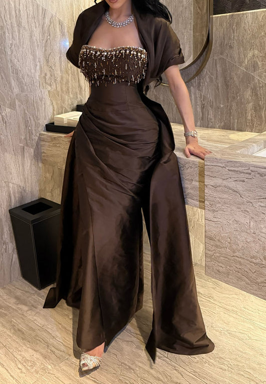 Off-Shoulder Strapless Beaded Evening Dress Mermaid Formal Dress