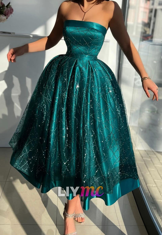 Off-Shoulder Strapless Sequins Beaded Sparkly Prom Dress