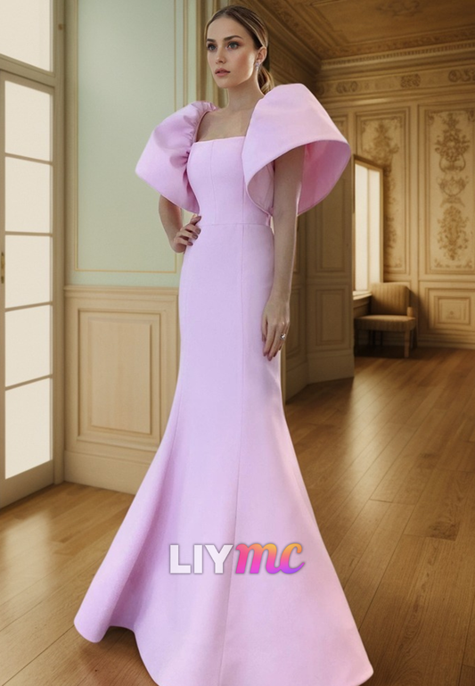 LP2289 - Straight Across Sleeves Mermaid Sleek Satin Prom Dress