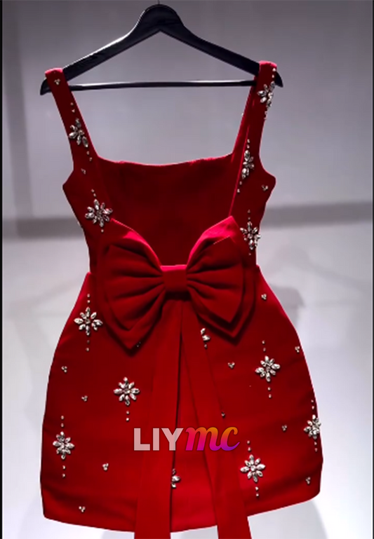 Square Straps Beaded Sheath Sparkly Party Homecoming Dress
