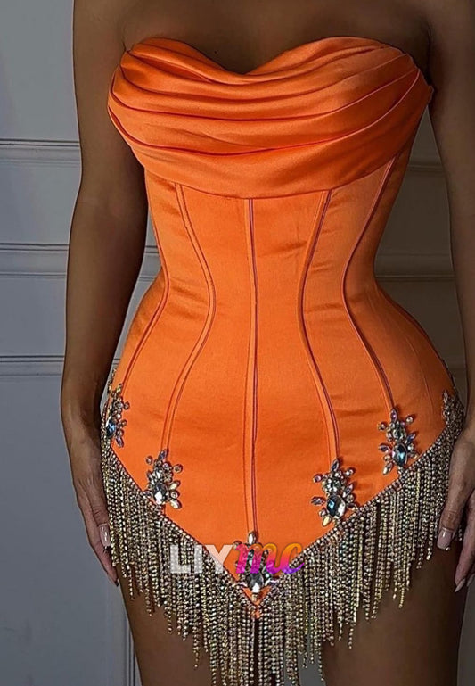 Sweetheart Sequins Beaded Fringe Sheath Homecoming Dress