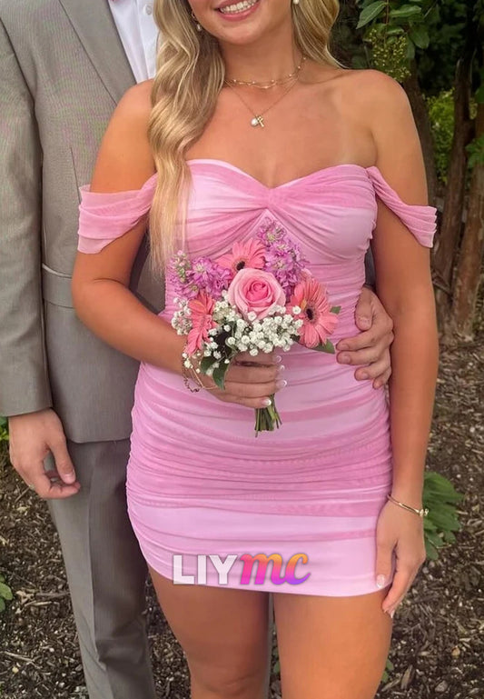 Off-Shoulder Appliques Pleated Sheath Party Homecoming Dress