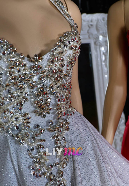 Asymmetrical Sleeveless Sparkly Tiered A-Line Party Homecoming Dress