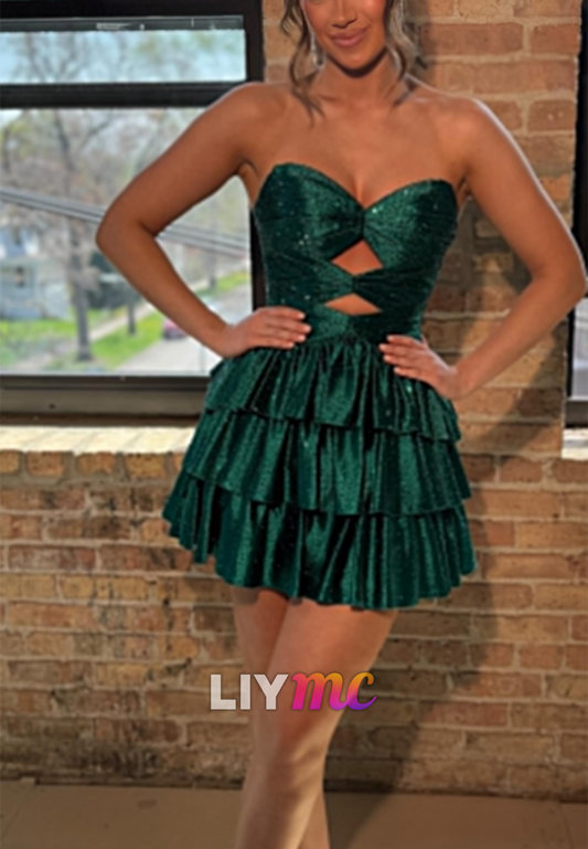 Sweetheart Tiered Sparkly A-Line Short Party Homecoming Dress
