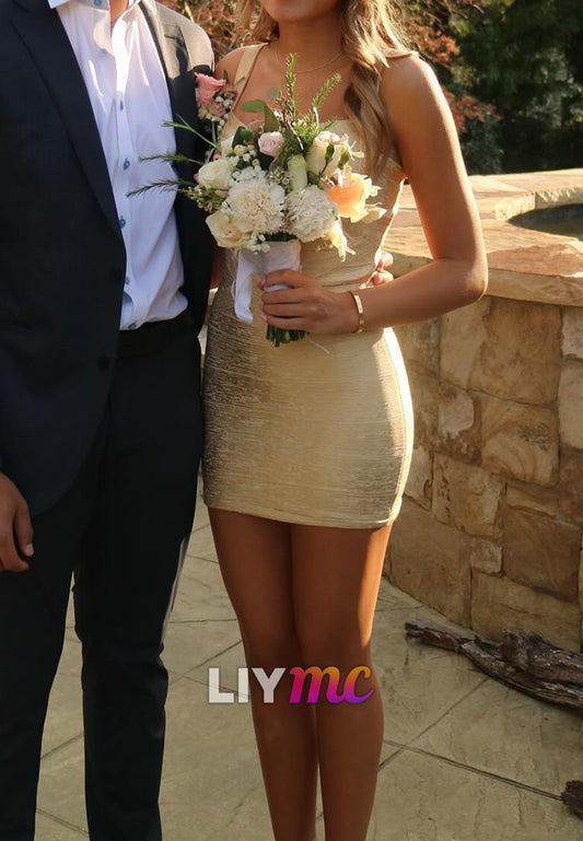 V-Neck Straps Sleek Sheath Fitted Sheath Party Homecoming Dress