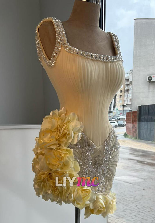 Scoop Straps Floral Embellished Sheath Beaded Party Homecoming Dress