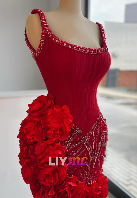 Scoop Straps Beaded Embroidery 3D Floral Sheath Party Homecoming Dress