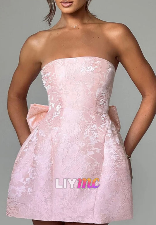 LY092 - Off-Shoulder Strapless Pleated A-Line Short Homecoming Graduation Dress