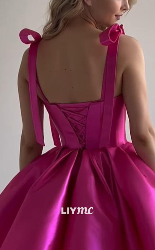 LY041 - Straight Across Sleeveless Pleated A-Line Bowknot Short Homecoming Dress