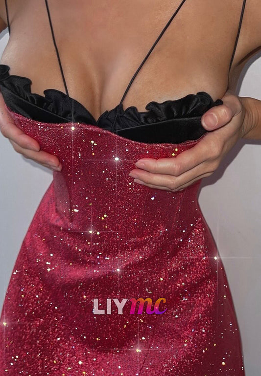V-Neck Spaghetti Straps Sequins Sheath Party Homecoming Dress