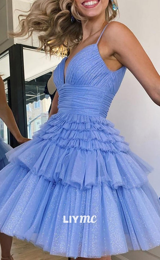 LY154 - V Neck Sparkly A-Line Short Homecoming Dress