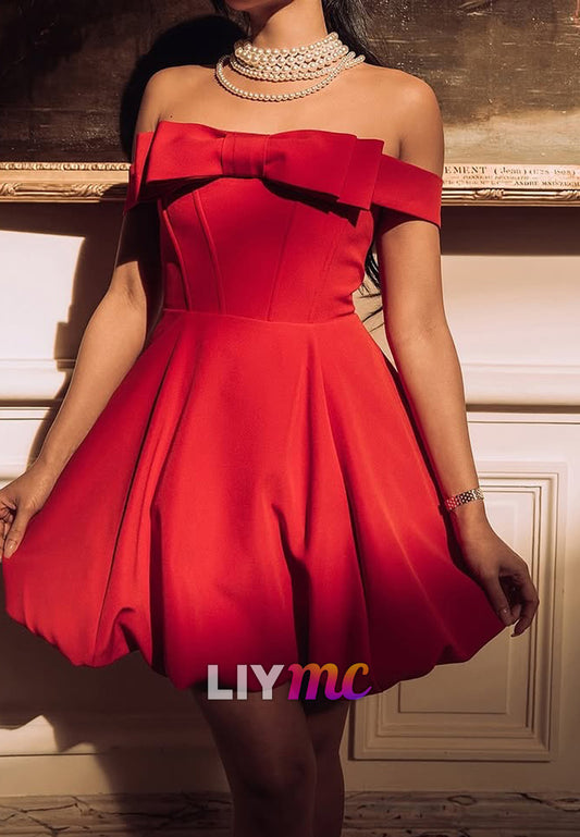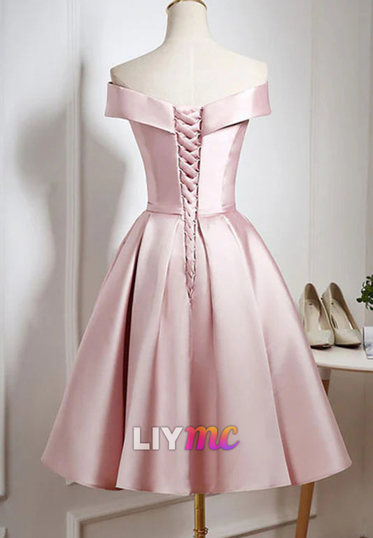 Off-Shoulder Sleek Pleated A-Line Party Homecoming Dress