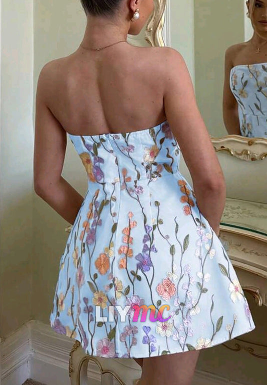 Sweetheart Strapless Floral Embellished Beaded A-Line Party Homecoming Dress