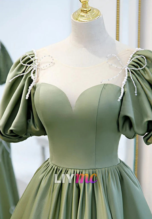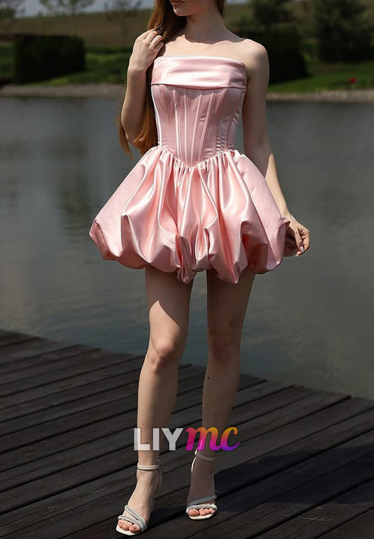 Sweetheart Puff Sleeves Pleated A-Line Party Homecoming Dress