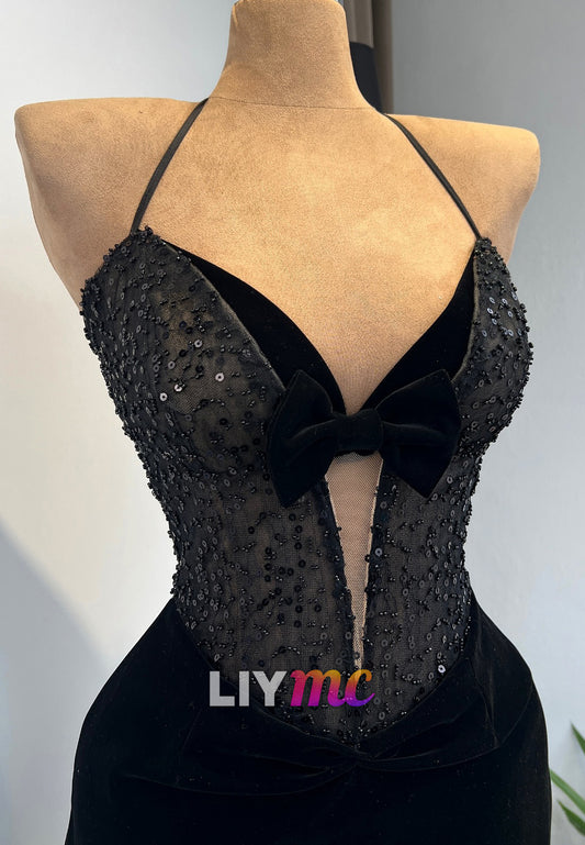 LY169 - V-Neck Sleeveless Lace-Up Bodycon Sexy Homecoming Graduation Dress