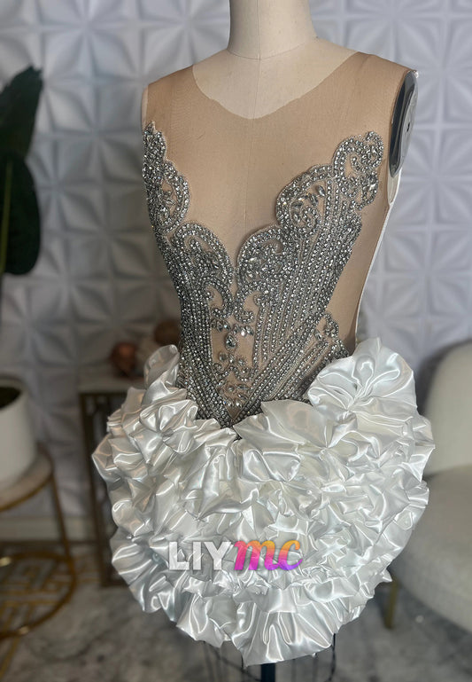 V-Neck Sleeveless Beaded Ruffled A-Line Homecoming Dress