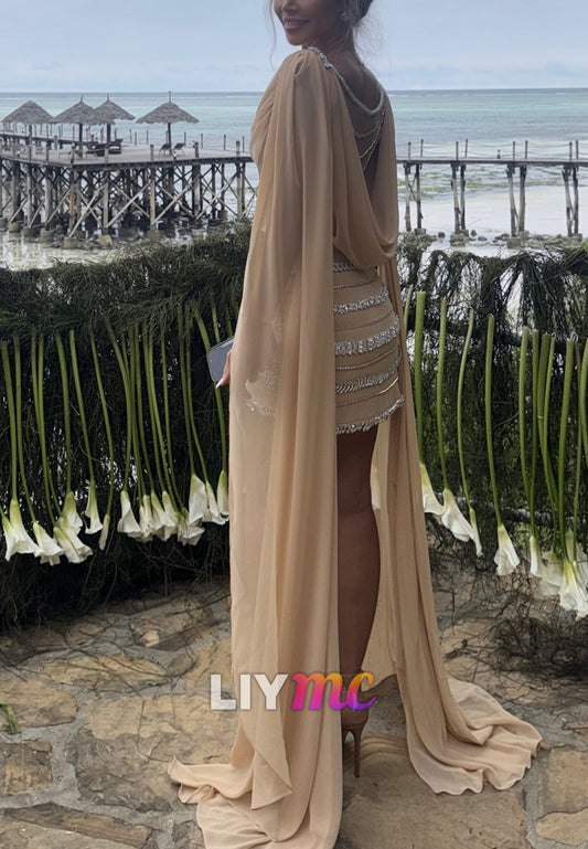 Straight Across Beaded Embroidery Sparkly Sheath Homecoming Dress