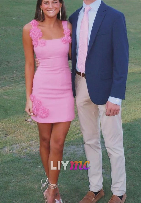 Square Straps Floral Embellished Sheath Homecoming Dress