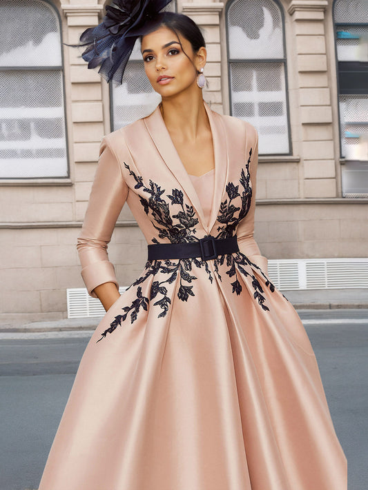 A Line Cowl Neck 3/4 Sleeves Tea Length Elegant Mother Dresses CM0348