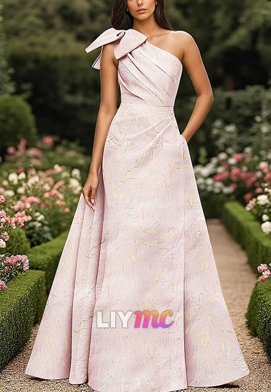 A-Line Evening Gown Elegant Dress Formal Wedding Floor Length Short Sleeve One Shoulder Mother Of the Bride Dress