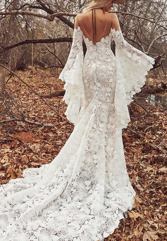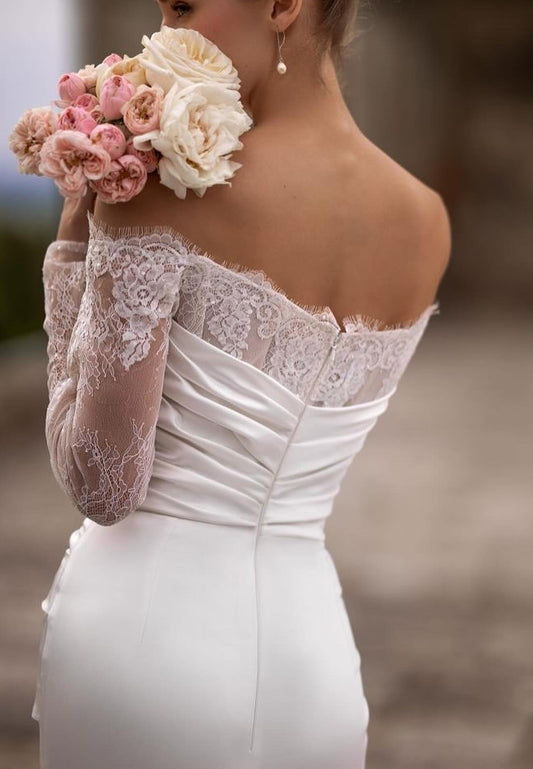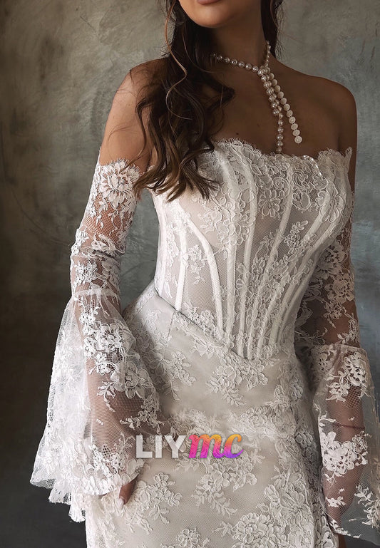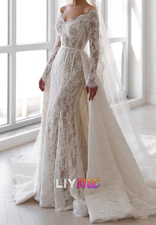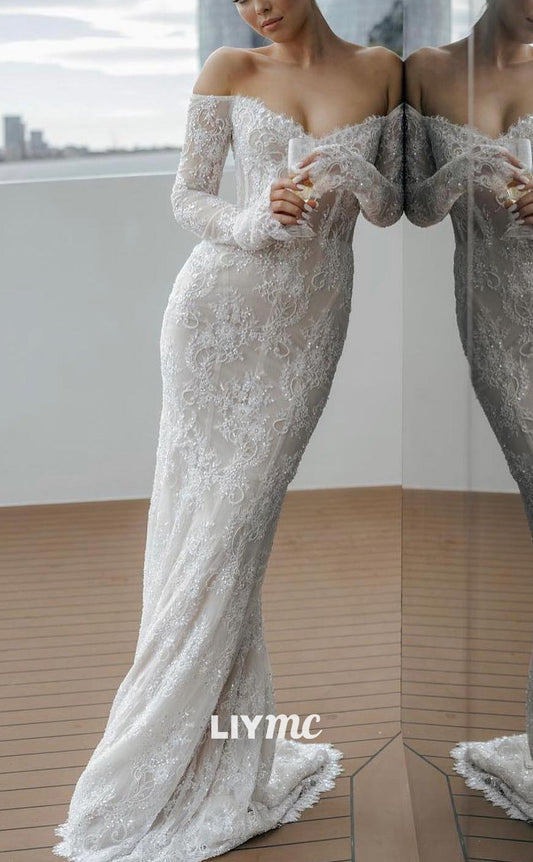 LW726 - Off-Shoulder Long Sleeves Lace Appliques Mermaid Wedding Dress
