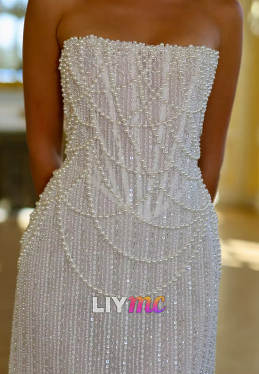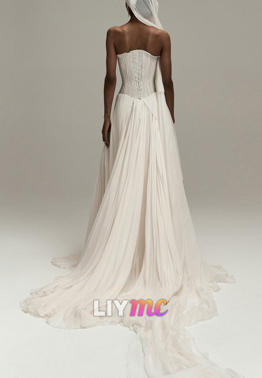 LW827 - Straight Across Sleeveless Pleated Side Slit Beach Wedding Dress