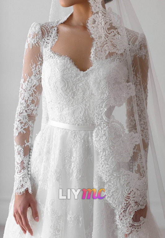 Sweetheart Long Sleeves Lace Appliques A-Line Wedding Dress