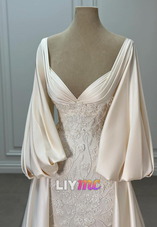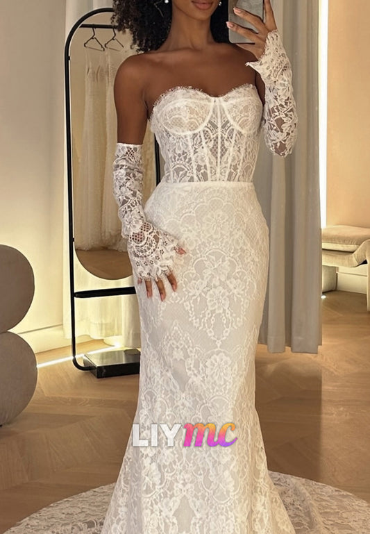 Sweetheart Strapless Long Sleeves Appliques Mermaid Wedding Dress