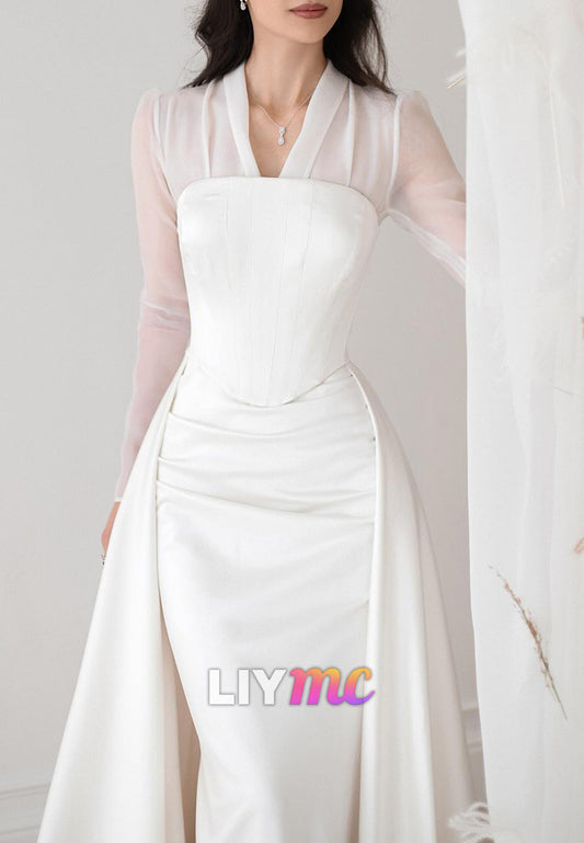 V-Neck Long Sleeves Sleek Satin Mermaid Wedding Dress