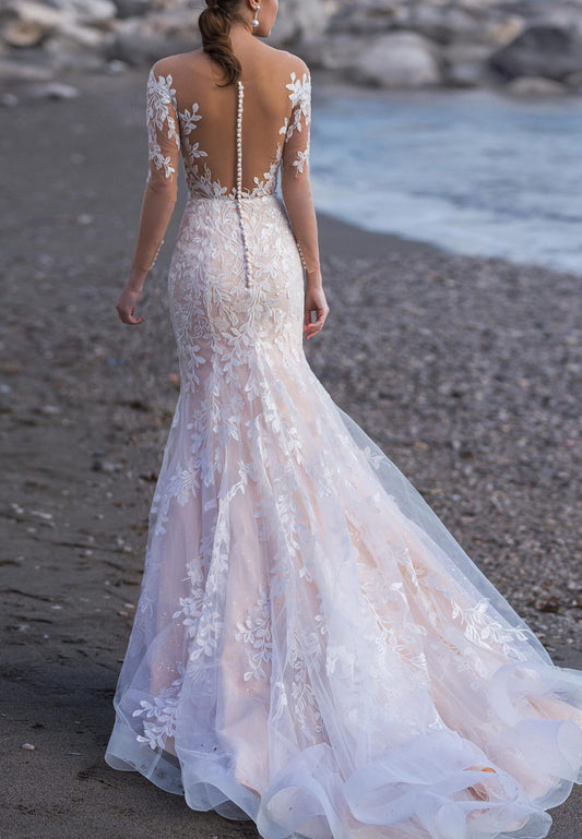 Sweetheart Long Sleeves Lace Appliques Fitted Mermaid Wedding Dress