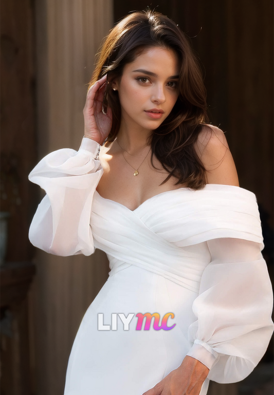Off-Shoulder Long Sleeves Sleek Mermaid Wedding Dress