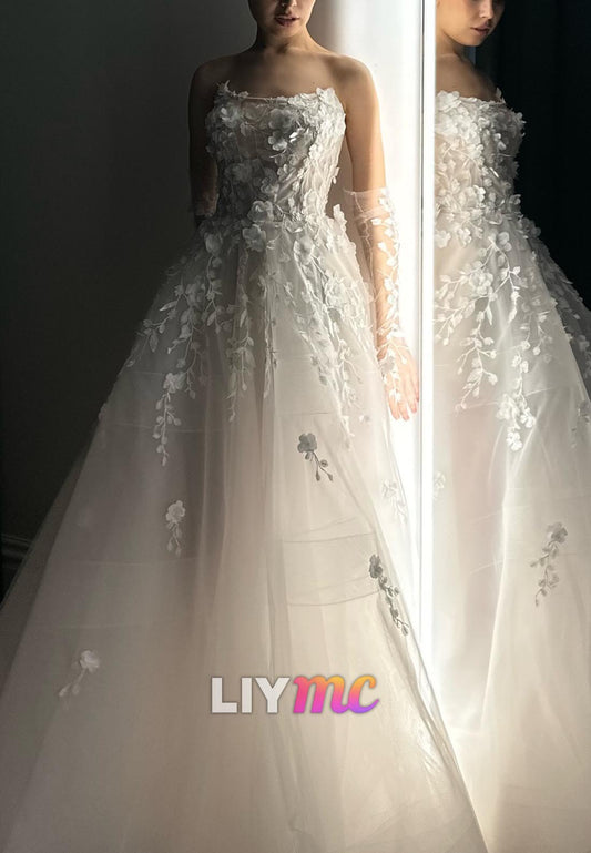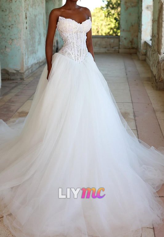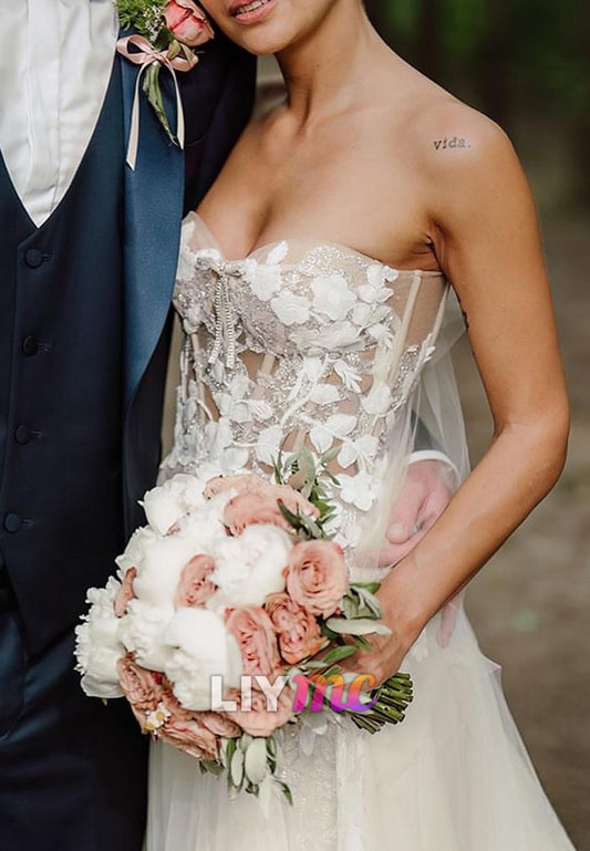 Sweetheart Strapless Appliques Tulle A-Line Wedding Dress