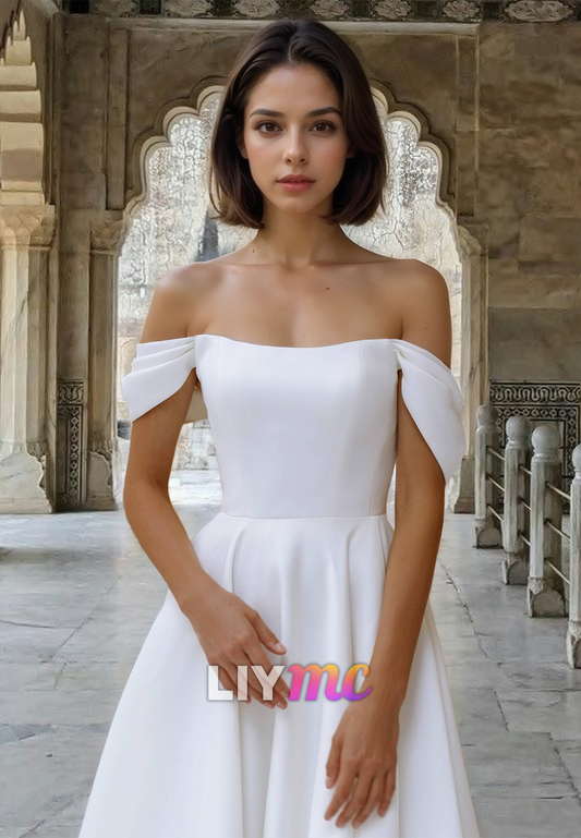 Off-Shoulder Sleeveless Pleated A-Line Beach Wedding Dress
